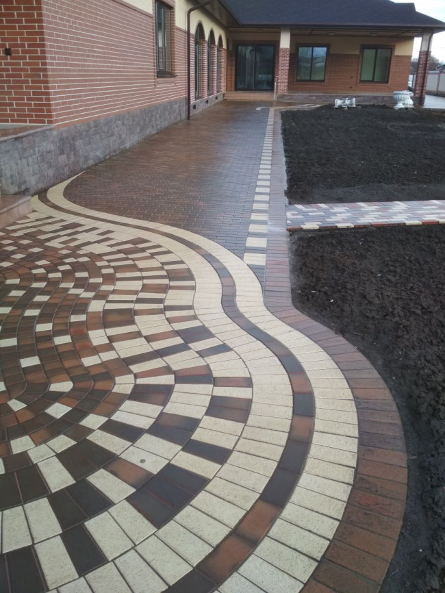 Укладка тротуарной плитки во дворе и на прилегающей территории.